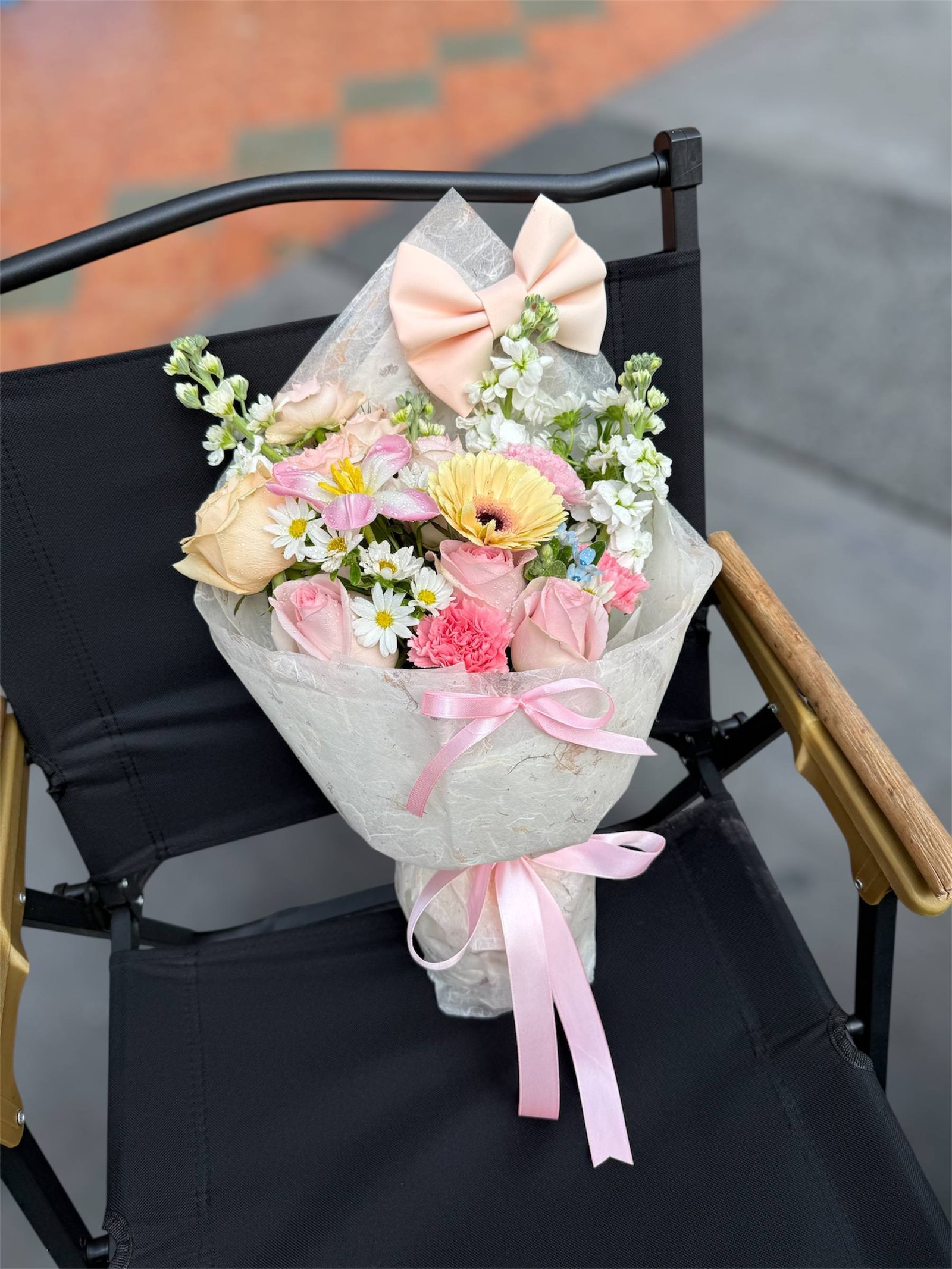 Like a sweet buttercream confection, ‘Buttercream Bliss’ features a delectable mix of peach roses, delicate daisies, and other delightful blooms. This bouquet is a treat for the senses, perfect for celebrating special moments and spreading joy.