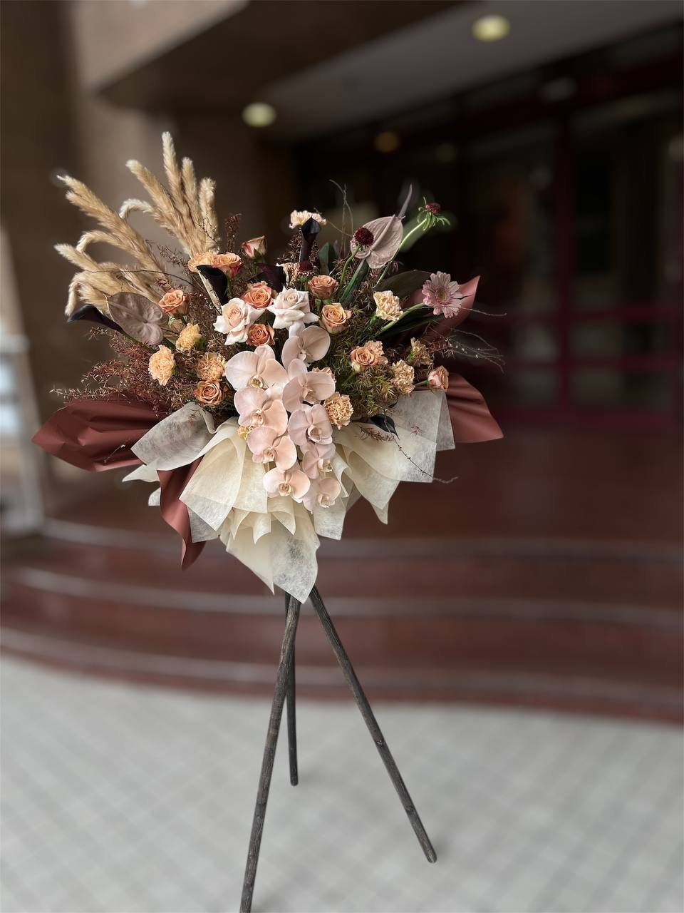 Like a rare bloom in the desert, this arrangement stands out with its unique blend of earthy tones and delicate orchids. A symbol of resilience and growth, perfect for a grand opening.